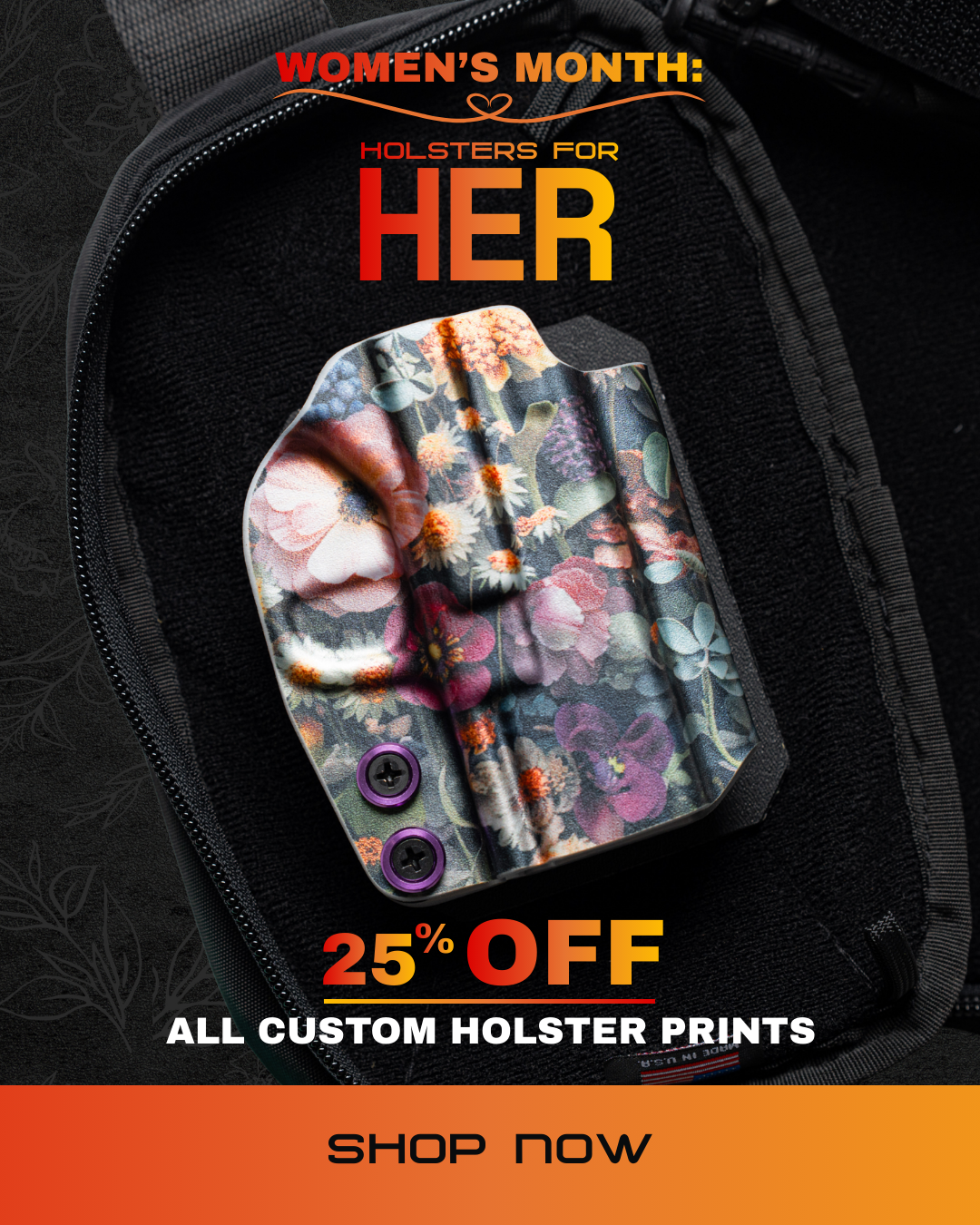 Founded by Jessica in 2013, Eclipse Holsters is a premier provider of high-quality, handmade holsters right here in the USA.